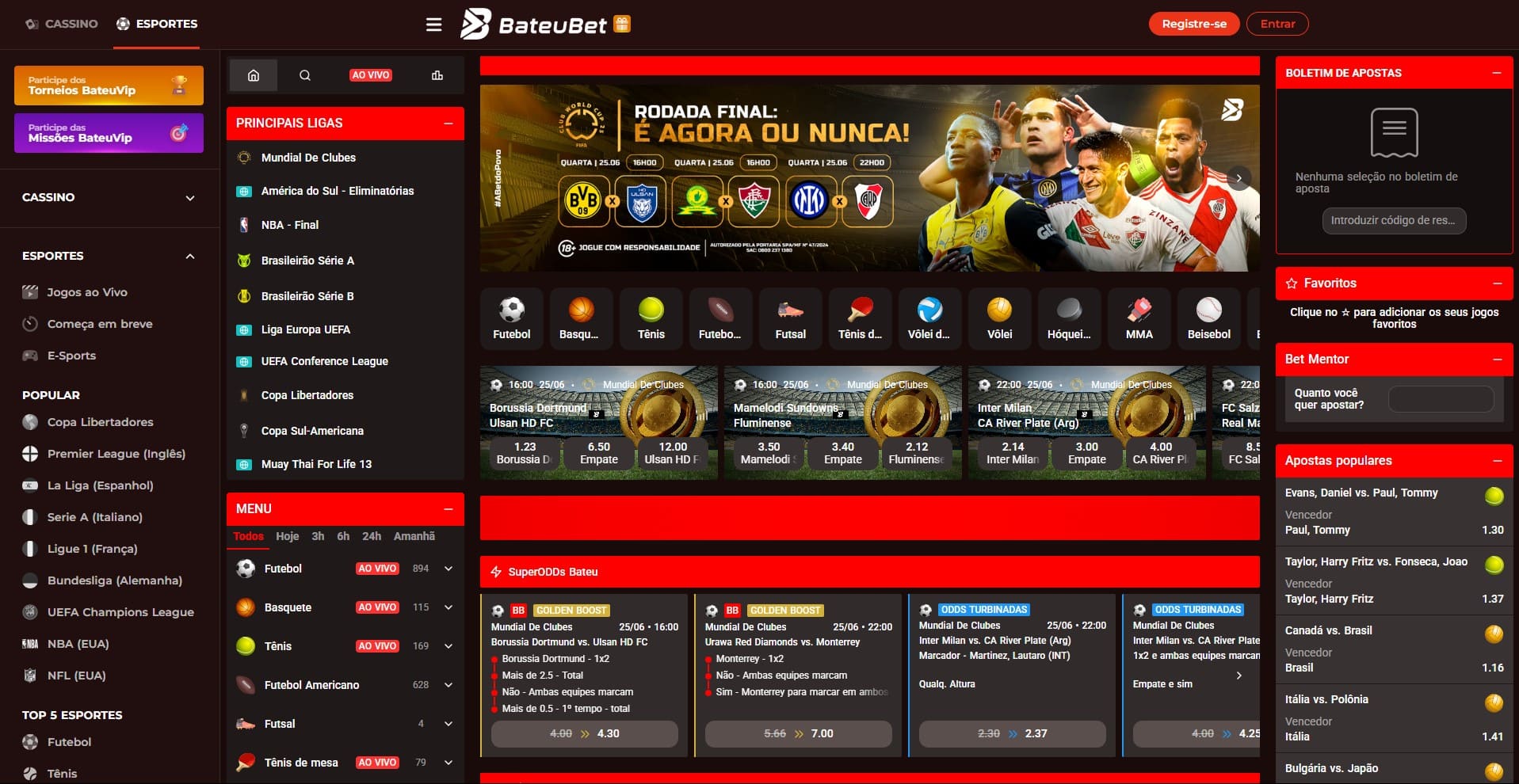 Toda a plataforma da Bateu Bet foi desenhada pensando em facilitar a sua vida. Criamos ferramentas intuitivas para que você possa encontrar seus jogos favoritos, fazer suas apostas e acompanhar seus resultados de um jeito super simples. Nosso histórico de apostas, por exemplo, é bem organizado para você ver todos os seus palpites. A função de busca da também é muito eficiente para você achar aquele time ou campeonato específico. Queremos que sua experiência na seja fluida e sem complicações.
